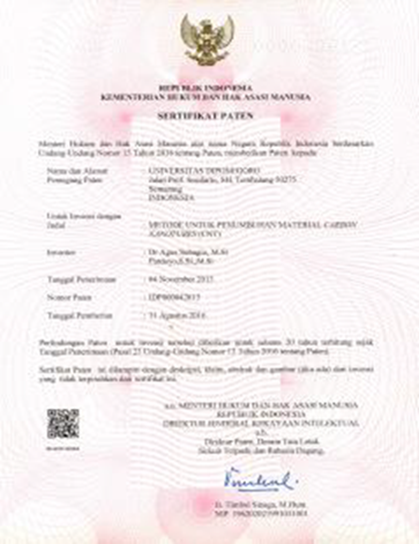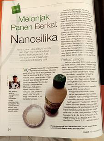Nano Silika sudah dipatenkan dan masuk 110 produk inovasi tahun 2018 oleh Business Innovation Center (BIC), serta mendapat penghargaan 40 Inovasi Solusi Agribisnis tahun 2019 dari TRUBUS